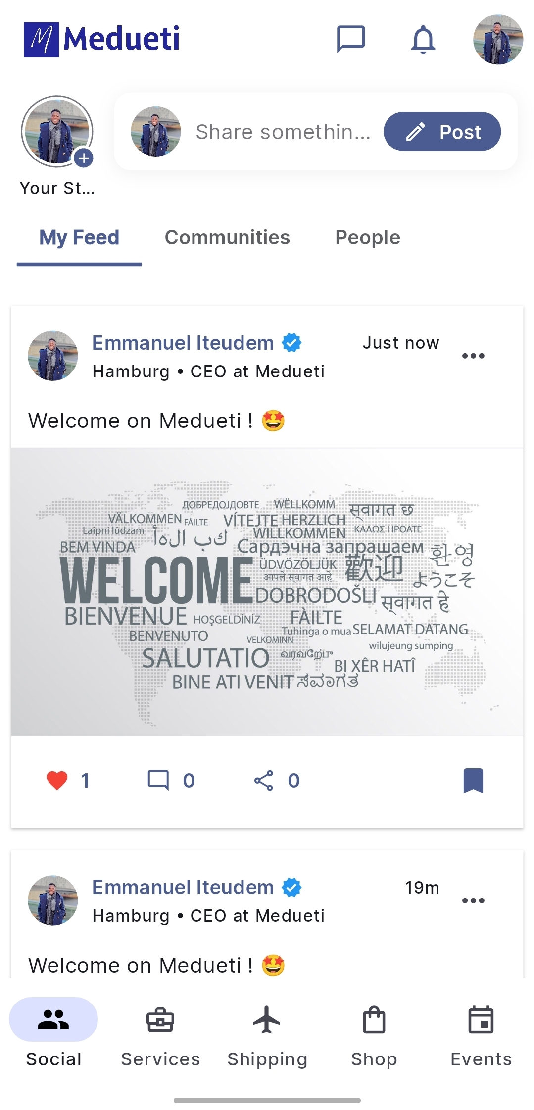 We strengthen social bonds through vibrant communities, foster economic growth with our Afroshops marketplace and local services directory, and facilitate cultural exchange with package delivery and a dedicated events hub. Medueti is more than an app; it's a movement to connect, empower, and celebrate the diaspora.